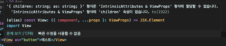 다른분의 polymorphic 컴포넌트 코드도 해봤지만 비슷한 오류가 발생해 버전업되면서, 또 다른 타입이 추가된건지 아니면 필자가 잘못한건지 파악할 필요가 있었다.