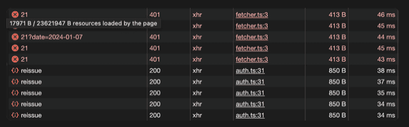 문제의 시작은 바로 API 호출이 아닌 토큰 만료시 재호출시 발생하였다.